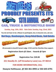 Sunday Aug 15th – Rain date Sunday August 22nd